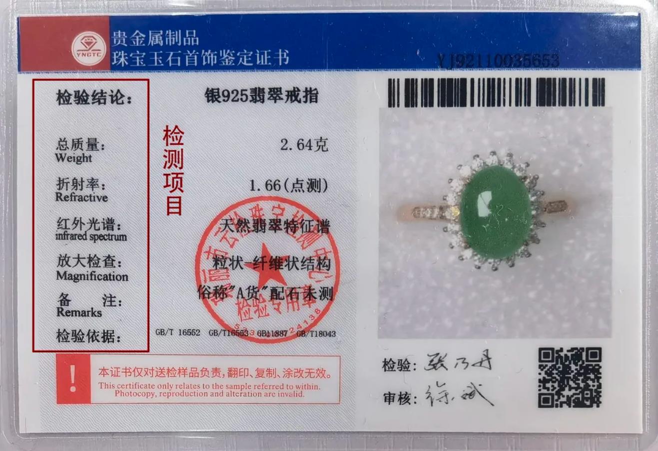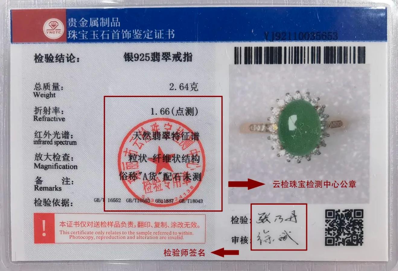 天空体育珠宝玉石首饰鉴定证书背面有“检测项目”